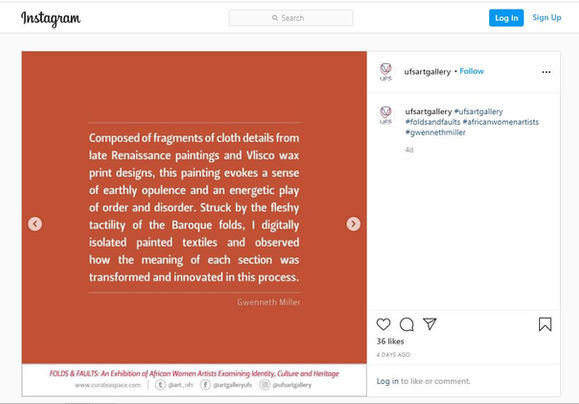 Folds: assumed abundance is included in the group exhibition  FOLDS AND FAULTS. An Exhibition of African Women Artists Examining Identity, Culture and Heritage, curated by Carol Brown and Zinhle Khumalo, an online Instagram exhibition from September 2020, hosted by University of the Free State (UFS), Bloemfontein.